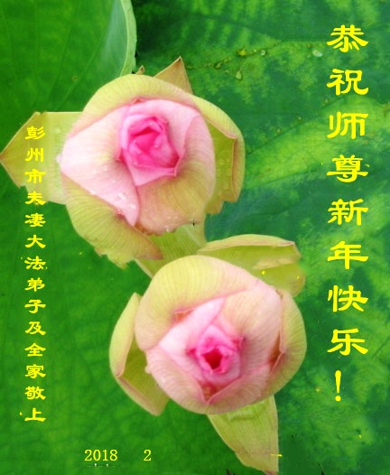 四川省成都彭州市夫妻大法弟子及全家恭祝師尊新年好!