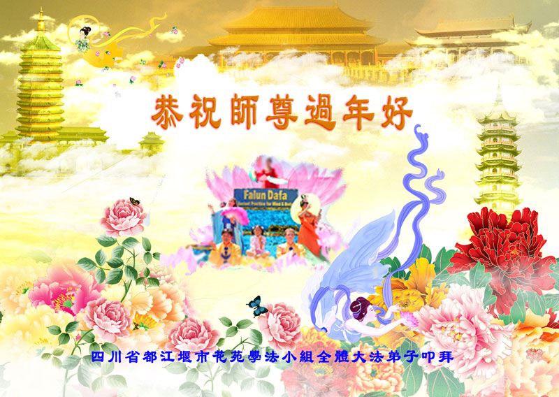 四川省成都市都江堰市花苑學法小組全體大法弟子恭祝師尊過年好!