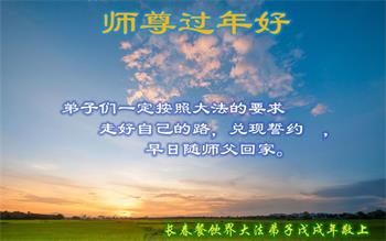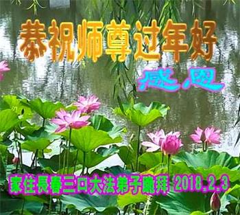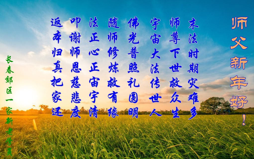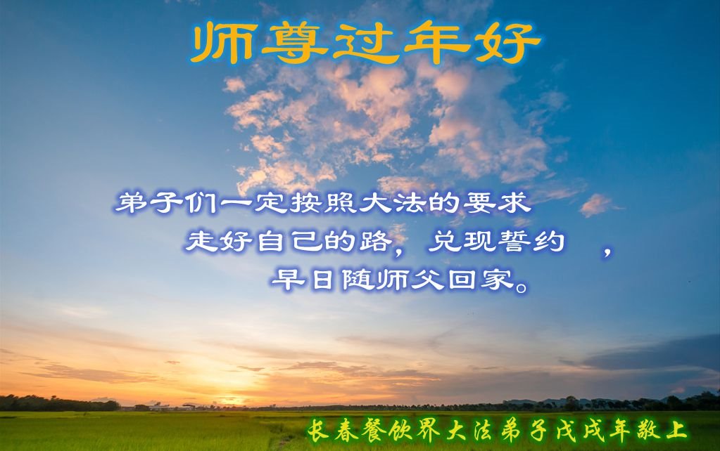 恭祝師父過年好!師父辛苦了!在新的一年裏,用心做好三件事,珍惜時間多救人,兌現誓約隨師還。長春兩大法弟子叩拜師尊!