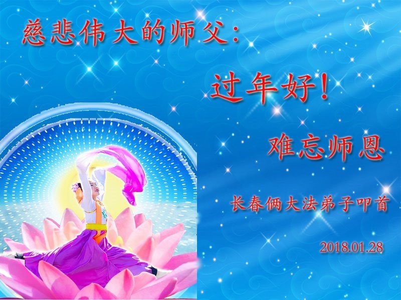 長春大法弟子新君恭祝師尊新年快樂!在新年到來之際,我們衷心感恩偉大師尊的慈悲救度,師父您辛苦了弟子們盼望早日與您團聚!
