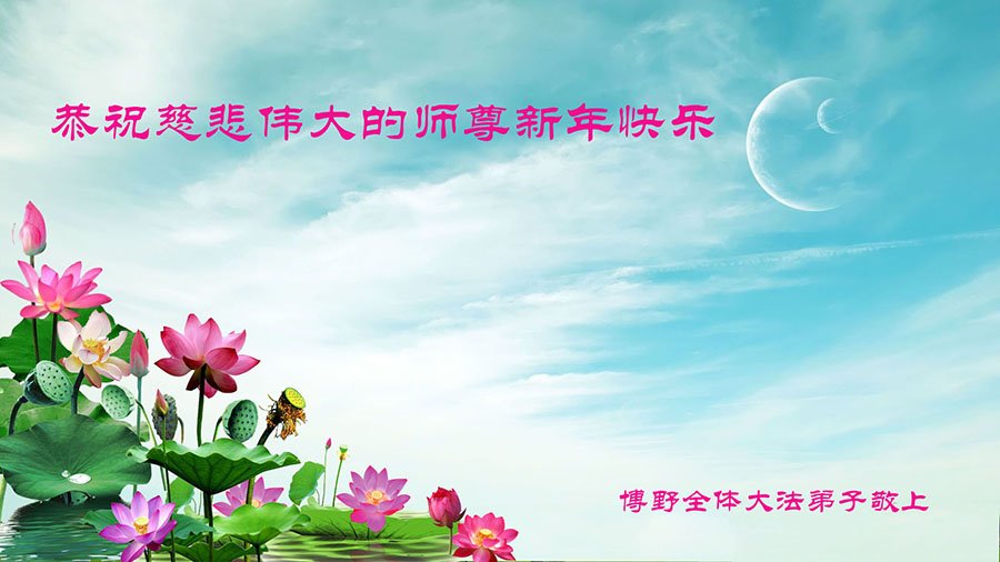 在新年到來之際,弟子恭祝師尊新年快樂!感謝師尊給了我第二次生命,茫茫苦海雙手把我托起,在我病魔纏身、希望俱滅的時候,幸遇大法才擺脫了我苦難的人生,千言萬語道不盡十九年來師尊的慈悲保護;八十五歲的老父親受益於大法,癌症晚期醫生斷言最多活半年。一年過去了、一分錢沒花安然健在,每天誦念大法好;公婆也受益於大法、身體健康,全家和睦相處。對師父的天恩,千言萬語彙聚一句話,師父新年好!法輪大法好!師父您辛苦了!弟子在新的一年裏,我一定精進實修,做一個合格的大法弟子,才不辜負師尊的慈悲苦度。