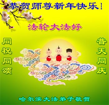 哈爾濱市大法弟子一學法小組恭祝慈悲偉大師尊新年快樂!