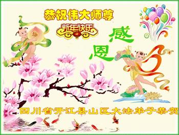 師尊:您辛苦了!您為了我們這些大法弟子操碎了心,我們無法回報師恩,弟子們只有做好三件事,修正一思一念,去掉一切執著心,抓緊時間多救人,讓師父多一份欣慰,少一份操勞。感謝師尊慈悲苦度,在新的一年裏弟子們一定謹記師尊的教誨,我們要更加精進,做好三件事,靜心學好法,遇事實修向內找,走好每一步,抓緊時間多救人,完成自己的使命。