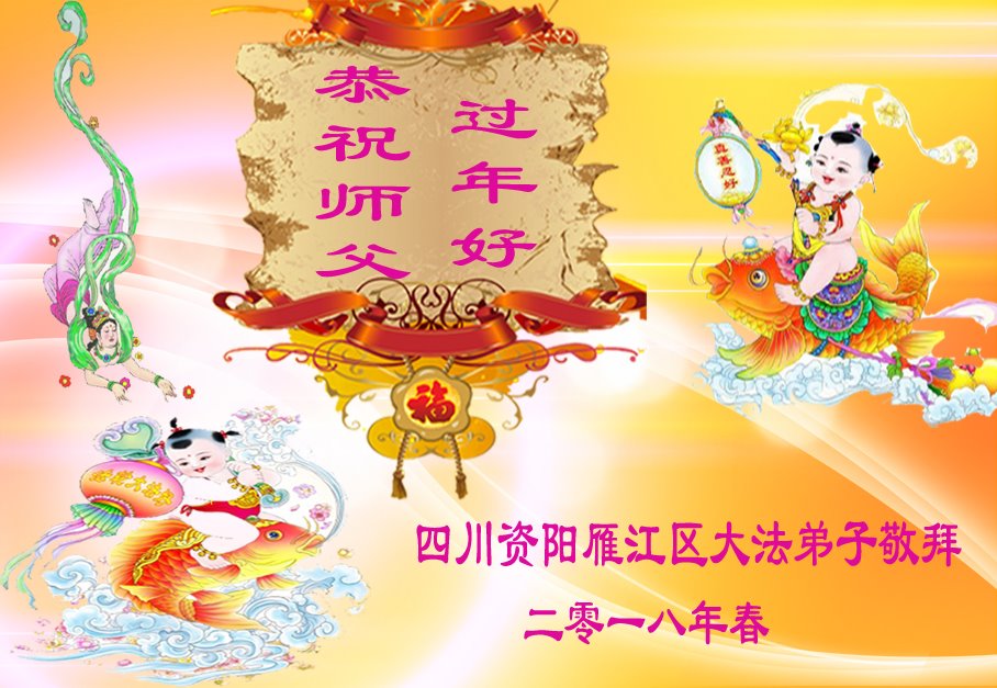 四川資陽雁江區大法弟子給慈悲偉大的師尊拜年!