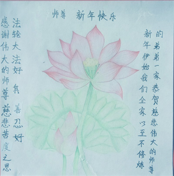 媽媽帶著我修煉,我有時也讓弟弟一起煉功,學法,我倆都要努力。新年到了,大家都給師父拜年,我倆也要給師父拜年,祝師父過年好!心裏想師父!