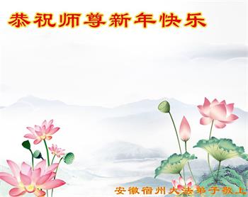 新的一年又來臨了,宿州市一中年大法弟子向偉大的師尊問候:恭祝師父新年快樂!感謝師父為弟子們巨大的付出,師父您辛苦了!