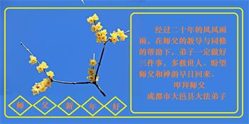 四川一大法弟子全家祝師尊新年好!感謝師尊慈悲救度,做好大法弟子應做好的一切,緊隨師尊正法。