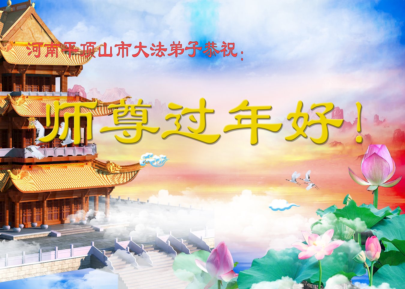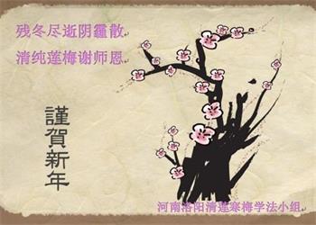 河南平頂山市全體大法弟子恭祝師尊新年愉快!我們一定在新的一年裏做好三件事,請師父在新的一年裏多一份寬慰!
