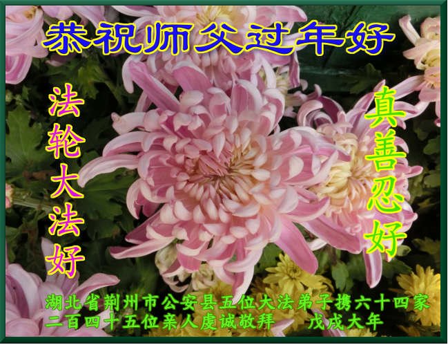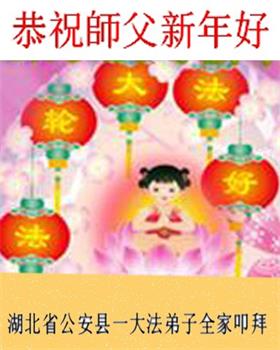 大法弟子率老伴、小女、外孫女向慈悲偉大的師父拜年!祝師父新年快樂!