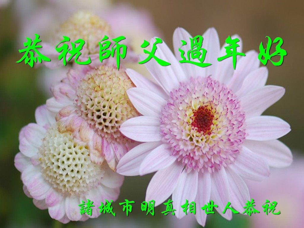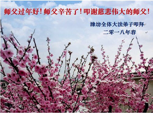 在這舉國歡慶的日子裏,您為了救度宇宙眾生,以任何生命都無法想像的巨大承受拖延著宇宙正法結束的時間,來讓我們達到標準。弟子們無以為報,只有聽師父的話,努力抓緊時間修好自己,做好師父講的三件事,跟師父回家。在這新年到來之際,我們山東省昌邑市全體大法弟子向師父拜年,恭祝師尊新年快樂!