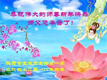 感謝師尊慈悲苦度,在新的一年裏,我們會更加精進實修,做好三件事,讓眾生明白大法真相,把大法的甘露洒遍人間,讓有緣眾生皆得大法福報。