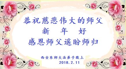 在戊戌年新年到來之際,西安市電子城的大法弟子祝賀慈悲偉大的恩師新年快樂!弟子們謹記恩師教導努力做好「三件事」,多學法學好法救度更多有緣人,圓滿隨師還!