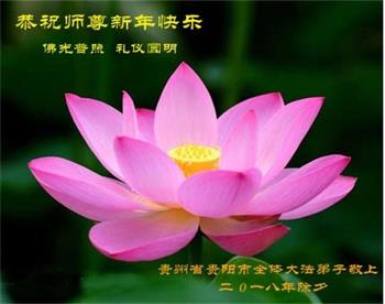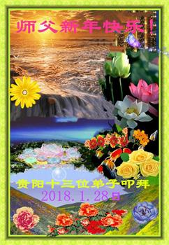 在戊戌新年到來之際,我們代表貴州全體大法弟子向慈悲偉大的師尊致以崇高的敬意和誠摯的問候:恭祝師尊戊戌新年快樂!師尊,您辛苦了!感恩師尊的慈悲苦度,弟子們一定遵循師尊的教導,做好三件事,圓滿隨師還。