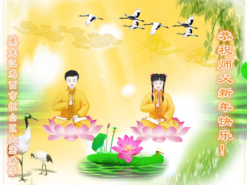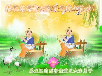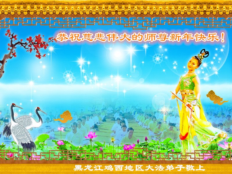 黑龍江省虎林市一學法小組大法弟子恭祝偉大師尊新年好!