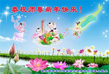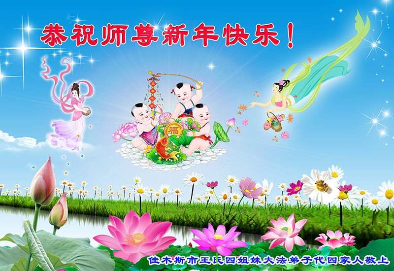 黑龍江省佳木斯王氏四姐妹大法弟子代四家人恭祝師尊新年快樂!