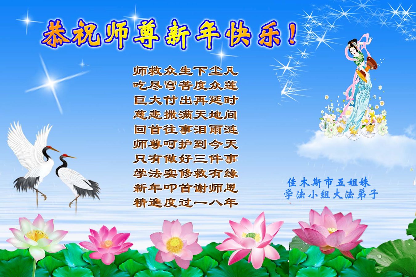 黑龍江省佳木斯五姐妹學法小組大法弟子遙祝師父新年快樂!