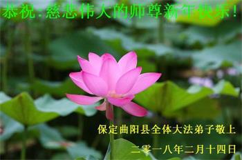 曲陽縣大法弟子深深的把對恩師無盡的思念匯成一句話:恭祝慈悲偉大的師尊新年好!師尊辛苦了!謝謝師尊的慈悲苦度!我們一定要學好法,多救人,做好三件事,精進實修