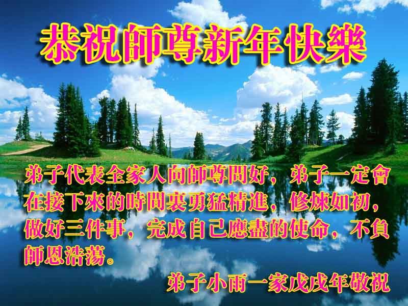 師尊過年好!您辛苦了!能作為您的弟子是最幸福的生命。我們會放下一切人心,純淨自己,完成大法弟子的使命,做個名副其實的正法時期大法弟子。