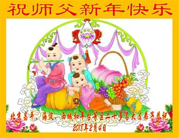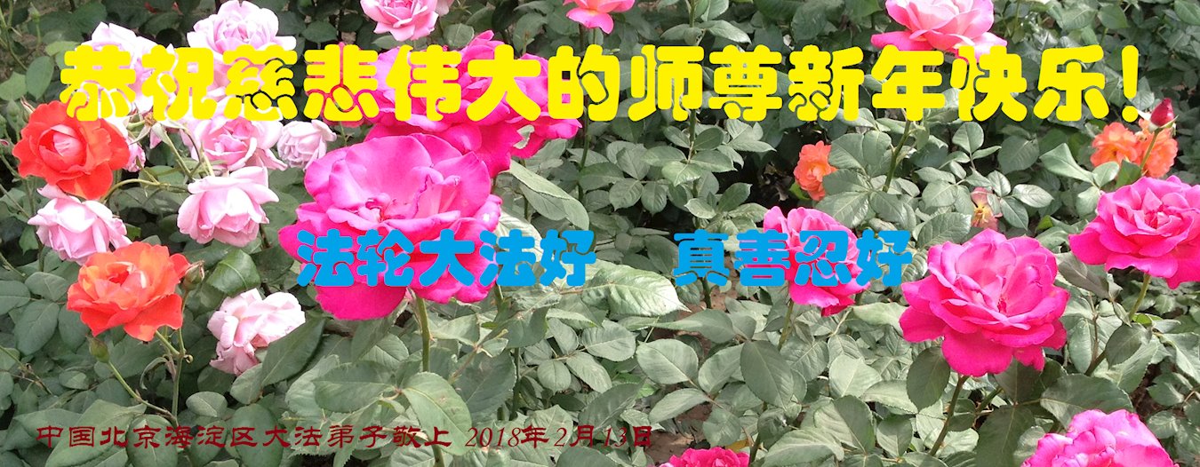在這辭舊迎新的喜慶時刻,我們全體弟子懷著幸福、激動、感恩的心,向我們慈悲偉大師尊拜年!師父謝謝您!祝師尊過年好!不忘師尊苦度,我們精進過,也曾摔倒過,歷經魔難,但我們都堅定的爬起來,走正修煉的路。牢記師尊洪願,心繫天下還在迷中的眾生,修好自己,助師正法,不負大法弟子的使命和大法弟子的稱號。敬請師尊放心!