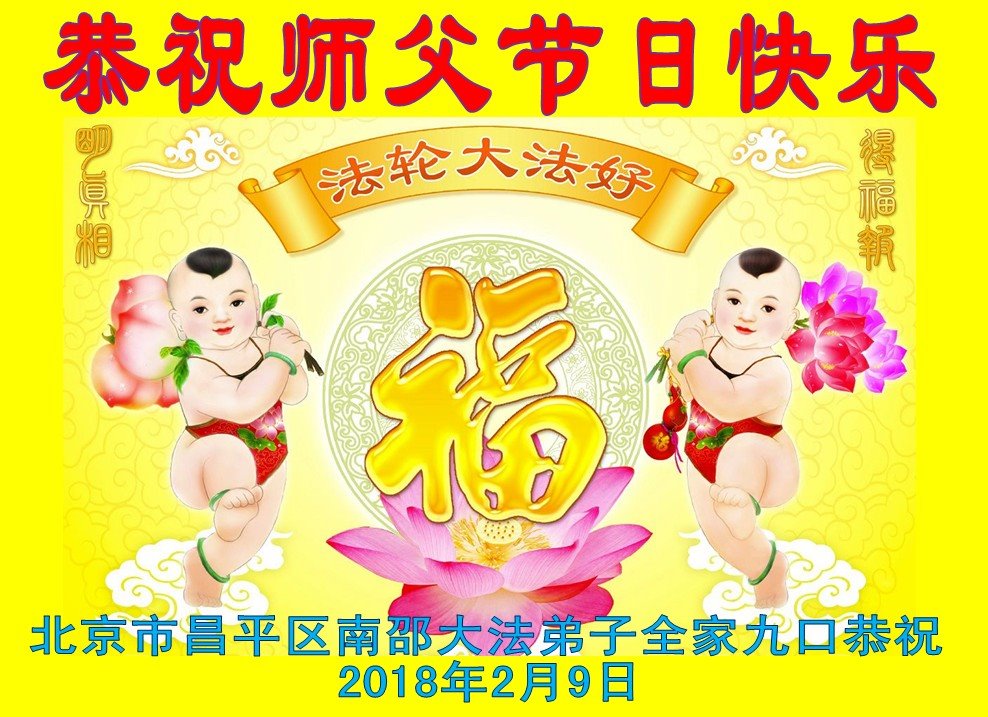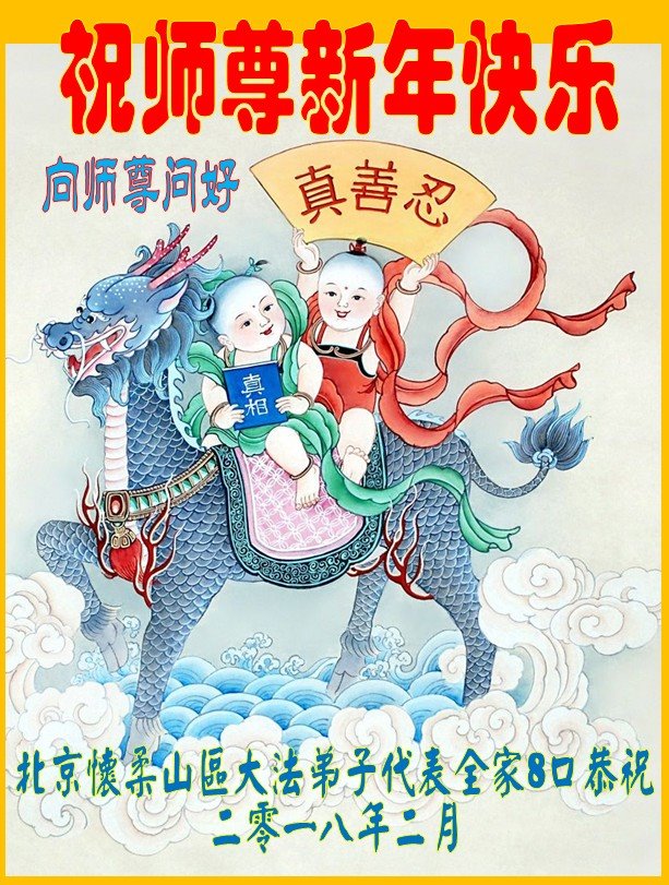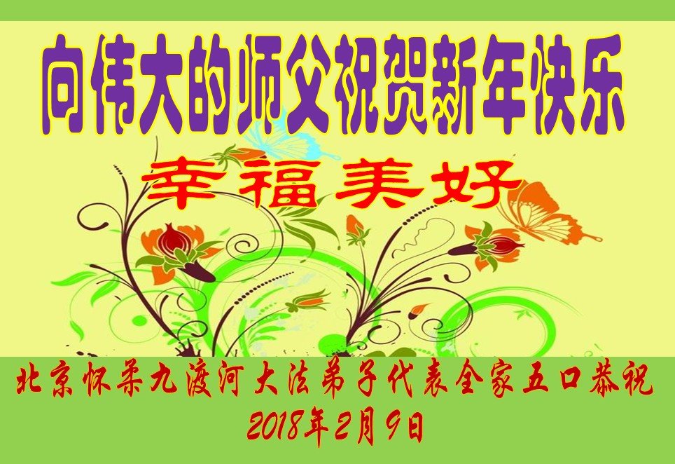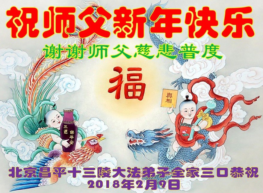 在中國新年到來之際,我代表我、丈夫、兒子、兒媳、女兒、女婿和兩個孫子、一個外孫,全家九口向您問好!祝您節日快樂!謝謝您為為眾生操心,慈悲普度我們!