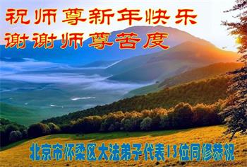 北京懷柔九渡河全體大法弟子給師尊拜年!叩拜師尊!甚麼語言甚麼方式都表達不了您對我們的好!謝謝您對我們的時時呵護!