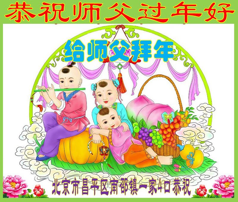 北京昌平大法弟子全家5口給師父拜年!恭祝師父新年好!