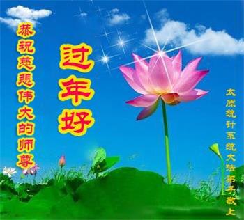 在新年到來之際,山東省水利系統大法弟子恭祝慈悲偉大的師尊新年快樂!弟子感恩師尊的慈悲苦度,唯有聽師尊的話,做好三件事,圓滿隨師還。弟子叩拜師尊。