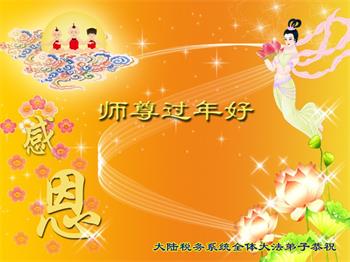 大陸稅務系統全體大法弟子恭祝慈悲偉大的師尊過年好!師尊辛苦了!