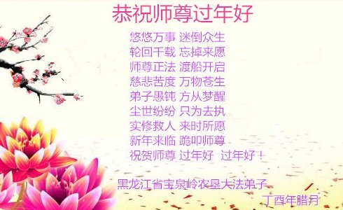 黑龍江寶泉嶺農墾大法弟子恭祝師尊過年好!