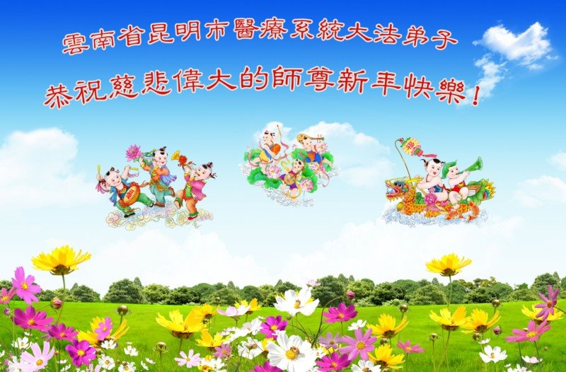 雲南昆明市醫療系統大法弟子恭祝偉大的師尊新年快樂!