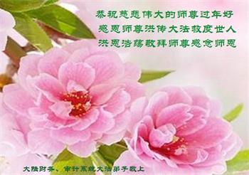 我是96年得法的老弟子,在中國新年到來之際,給您拜年了,您辛苦了,謝謝您的慈悲救度。弟子只有多學法、學好法,做好三件事,實修自己,兌現誓約,跟師父回家。
