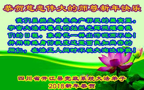 四川省達州市開江縣黨政系統大法弟子恭祝慈悲偉大的師尊新年快樂!