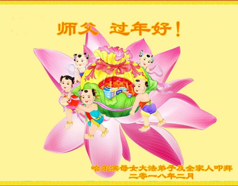 黑龍江省哈爾濱母女大法弟子及全家人向師父拜年!師父過年好!感恩師父的慈悲苦度!