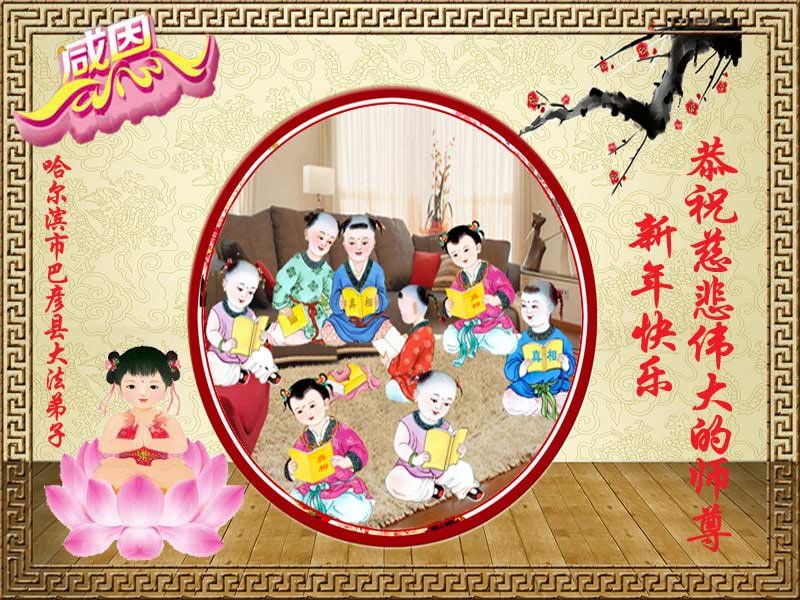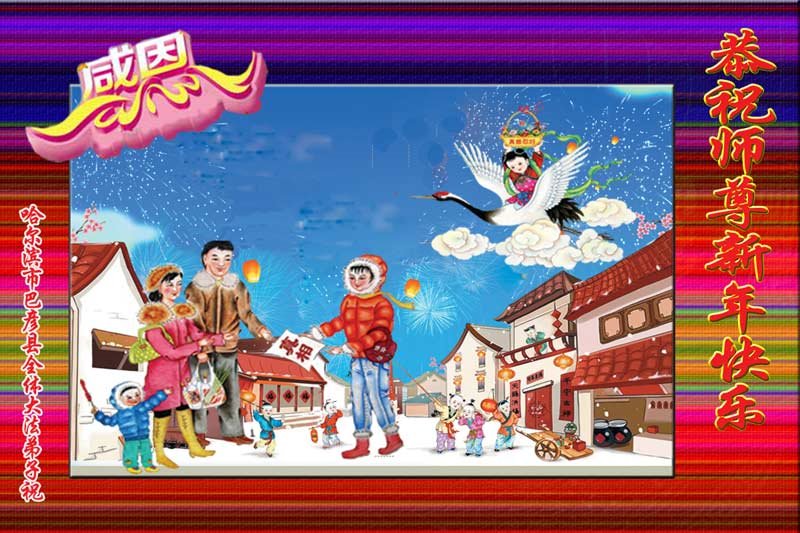 在新年即將來臨之際弟子們恭祝師尊新年好!弟子們道一聲師尊您辛苦了!時間真的太快了,過去的一年弟子們真的是太感恩師尊了,在師尊的慈悲看護下弟子們在救度眾生的路上有過喜悅、有過驚心,有過太多太多的不足。在今後的實修中弟子們一定會學好法,向內找,做好三件事,請師尊放心。依蘭縣全體大法弟子再一次恭祝師尊新年好!