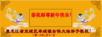 黑龍江省哈爾濱道裏區一學法小組大法弟子恭祝慈悲偉大的師尊新春快樂!