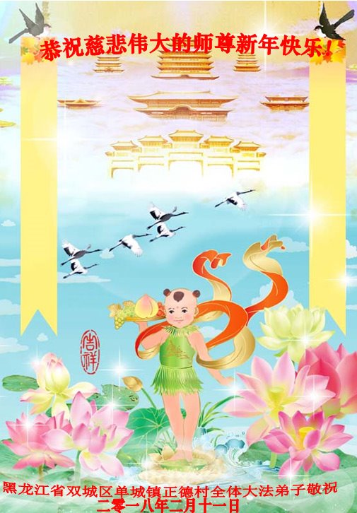 黑龍江省哈爾濱市雙城市區單城鎮正德村全體大法弟子恭祝師尊新年好!