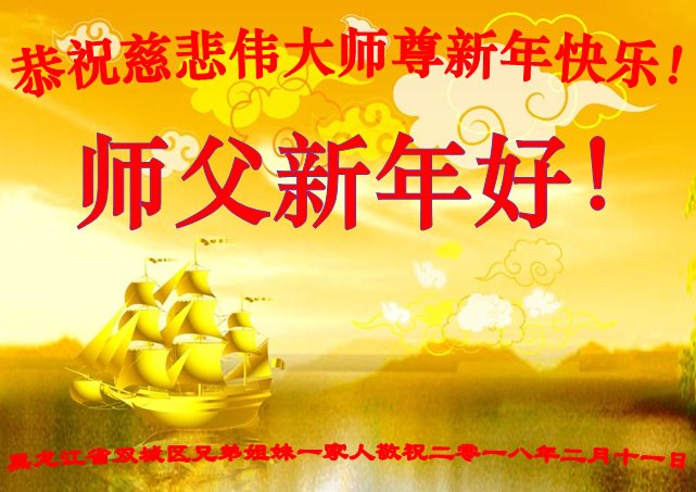 黑龍江省哈爾濱市雙城市區單城鎮全體大法弟子恭祝師尊新年快樂!