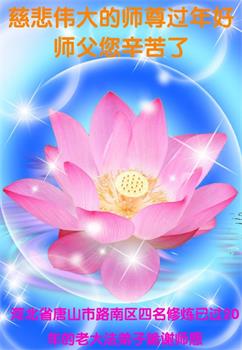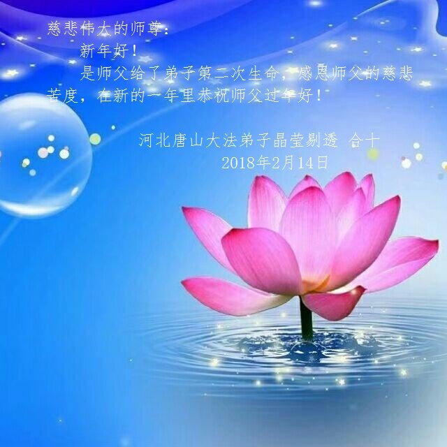 祝師尊新年快樂!新的一年又到來了,時間瞬間即逝,堅持走在神的路上的大法弟子永遠不變,我們一定兌現史前大願,惟願師尊笑!唐山大法弟子叩拜!