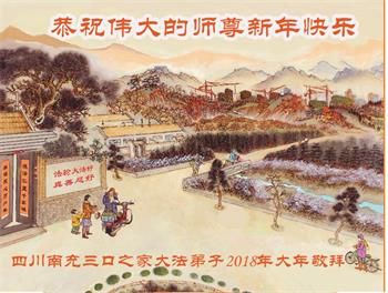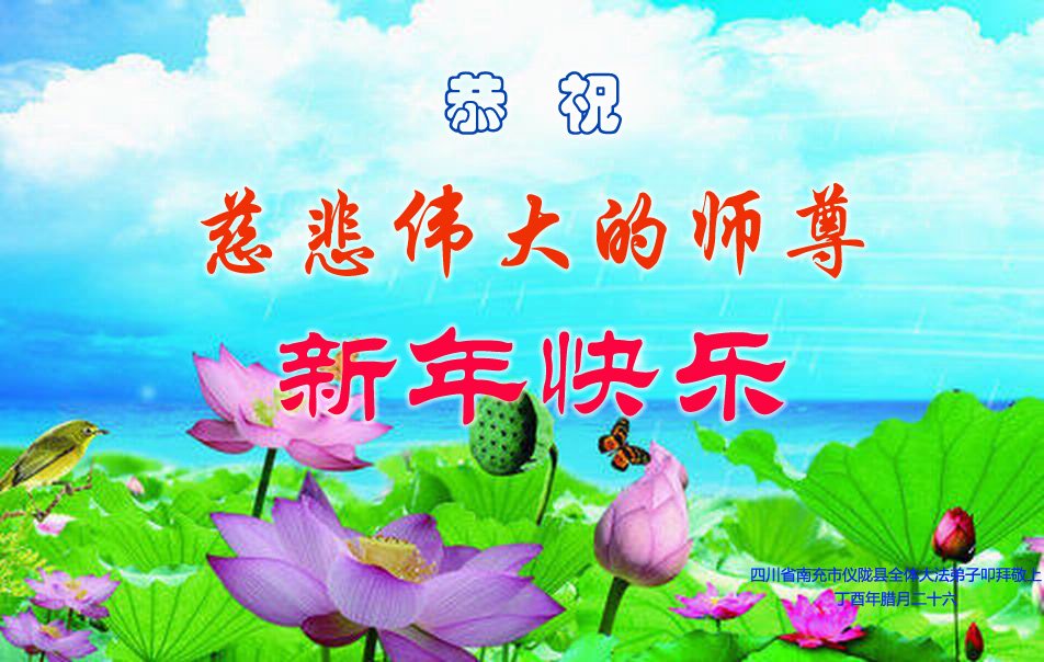 慈悲偉大的師尊:您好!四川省南充市儀隴縣大法弟子借助明慧一角恭祝您新年快樂!弟子們對師尊的慈悲苦度無以為報,唯有精進實修,努力做好三件事才能不負師望,不負期待得救的眾生的渴盼。弟子們再次跪拜恭祝師尊新年快樂!