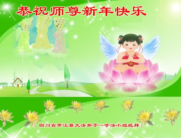 四川綿陽市一大法弟子及全家人恭祝師父新年快樂!