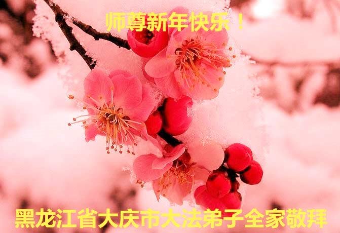 黑龍江省大慶市大法弟子全家恭祝師尊新年快樂!