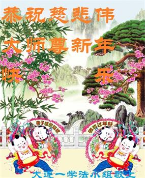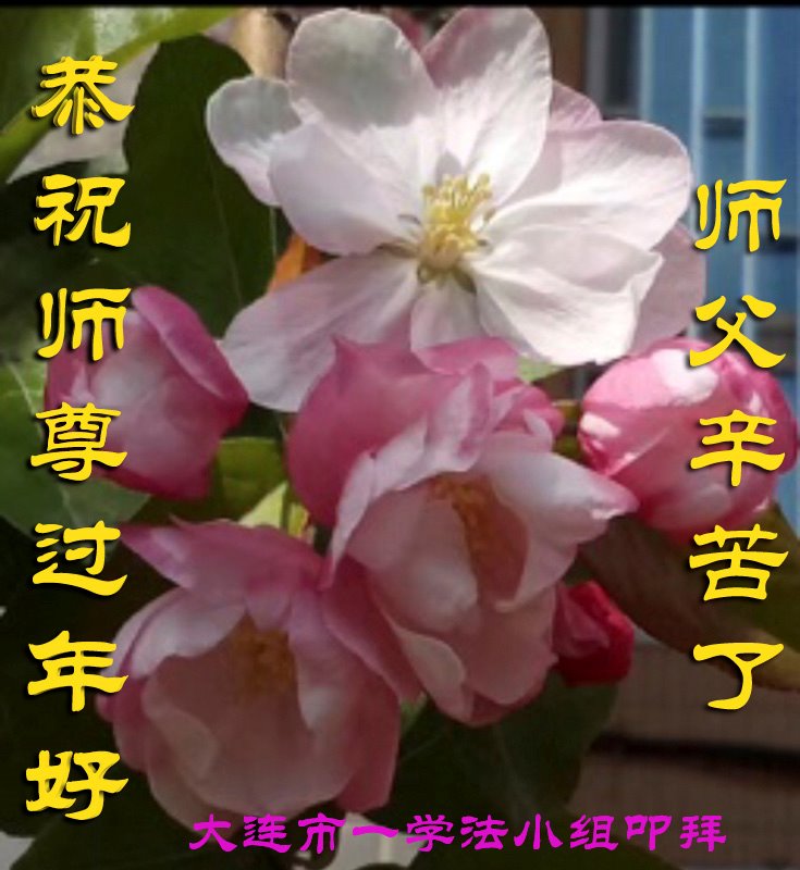 遼寧大連一學法小組全體大法弟子給慈悲偉大的師父拜年,祝師父新年快樂!師父辛苦了!謝謝師父!