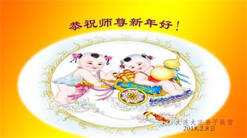 在過去的一年,弟子能在「百苦一齊降」(1)的關難中,穩步走在助師正法的神路上,我深深的體會到師父時刻都在弟子身邊、慈悲呵護、點悟著弟子。弟子對師尊的感恩無以言表,唯有精進再精進,表達對師尊的救度之恩!直此新年來臨之際,弟子向師尊拜年:師父新年好!師父全家新年好!