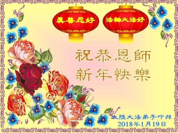 在2018年傳統新年到來之際 ,祝慈悲偉大的師父新年快樂!在新的一年裏,弟子一定要跟上正法進程,不辱師命,真修。 實修。跟師父圓滿回家。