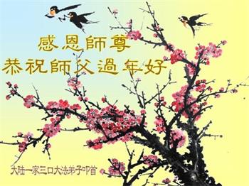 恭祝師尊新年快樂!恩師新年好!大陸大法弟子一家三口敬上。