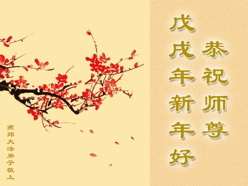 轉眼又一年到了,在這裏燕郊大法弟子恭祝師尊戊戌年新年好!感謝師尊傳給我們法輪大法,讓我們能夠用真善忍的標準做好人,使人類道德回升,讓更多的人能夠沐浴在大法慈悲與美好的法光中。