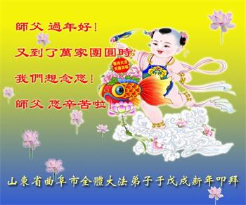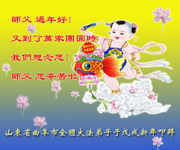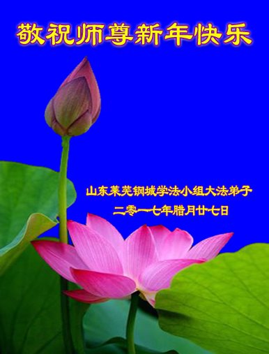 師父您辛苦了!弟子想念您!在新的一年裏,我們一定要更加精進,用心做好三件事,兌現誓約,跟師父回家。學法小組全體弟子叩拜師尊!