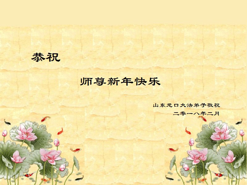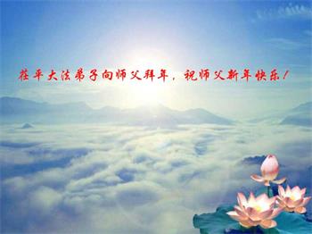 慈悲偉大的師尊過年好!是您把弟子從地獄中撈起、洗淨,領上弟子回家的路。千萬年的等待與期盼不再迷茫,不再無助,回歸的路上您把弟子細心看護。師父辛苦了,師父辛苦了。全體大法弟子給師父拜年,師尊過年好!