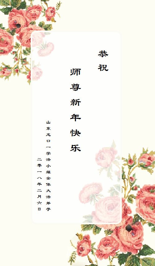 二零一八年新年來臨之際,山東煙台一學法小組大法弟子及家人:給師尊拜年!了,恭祝偉大、慈悲的師尊新年快樂!在新的一年裏,弟子們只有精進、精進再精進,做好三件事,多救世人,助師正法,請師尊放心!惟願師尊笑!