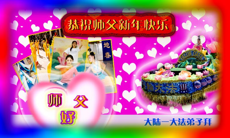 慈悲偉大的師父您好!新年快到了,弟子恭祝師父新年快樂!新年好!弟子非常想念師父,跪拜師父,盼師父早日回中國。在助師正法的路上,弟子唯有走正、走好最後的路,做好三件事,多救人,讓師父多欣慰。